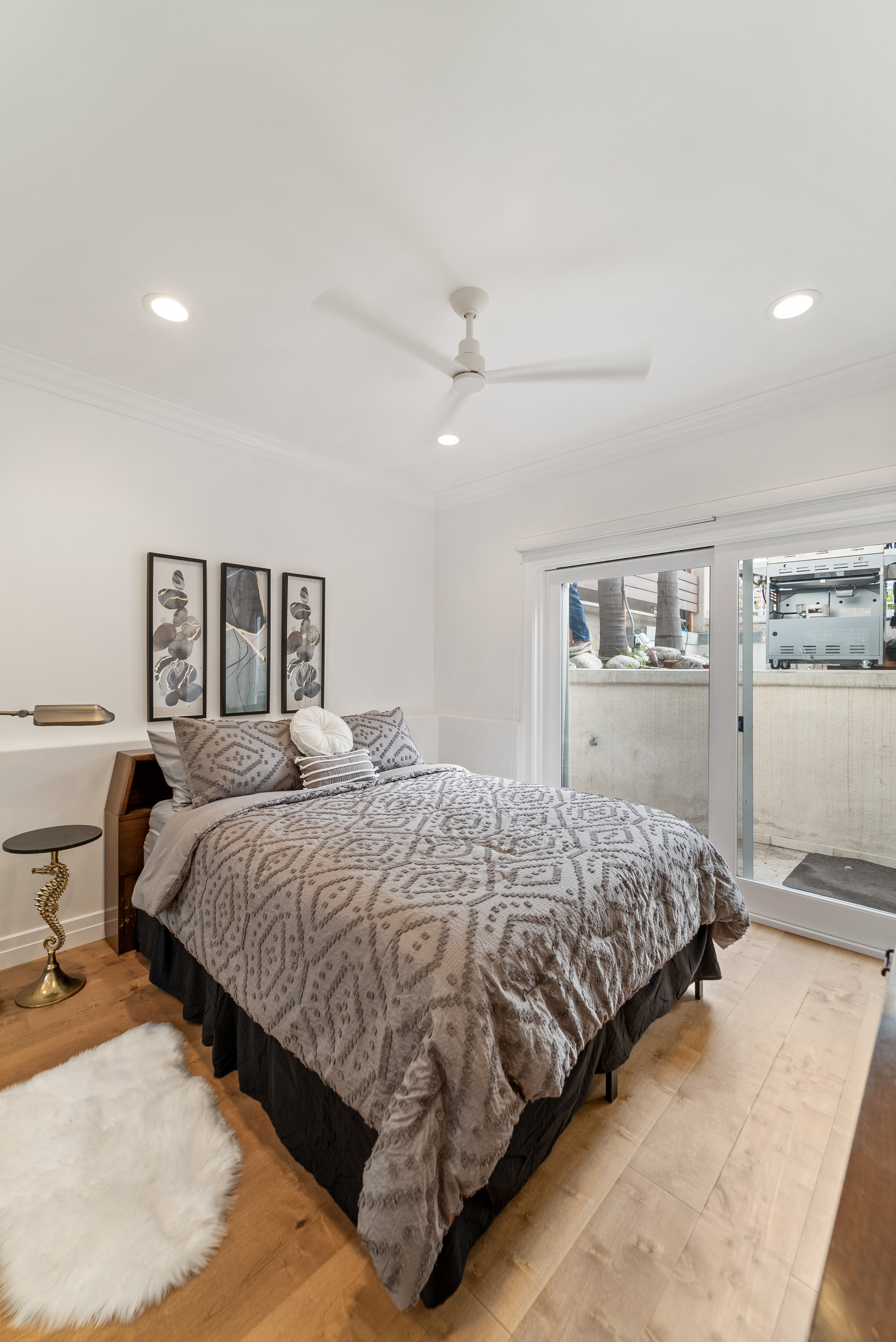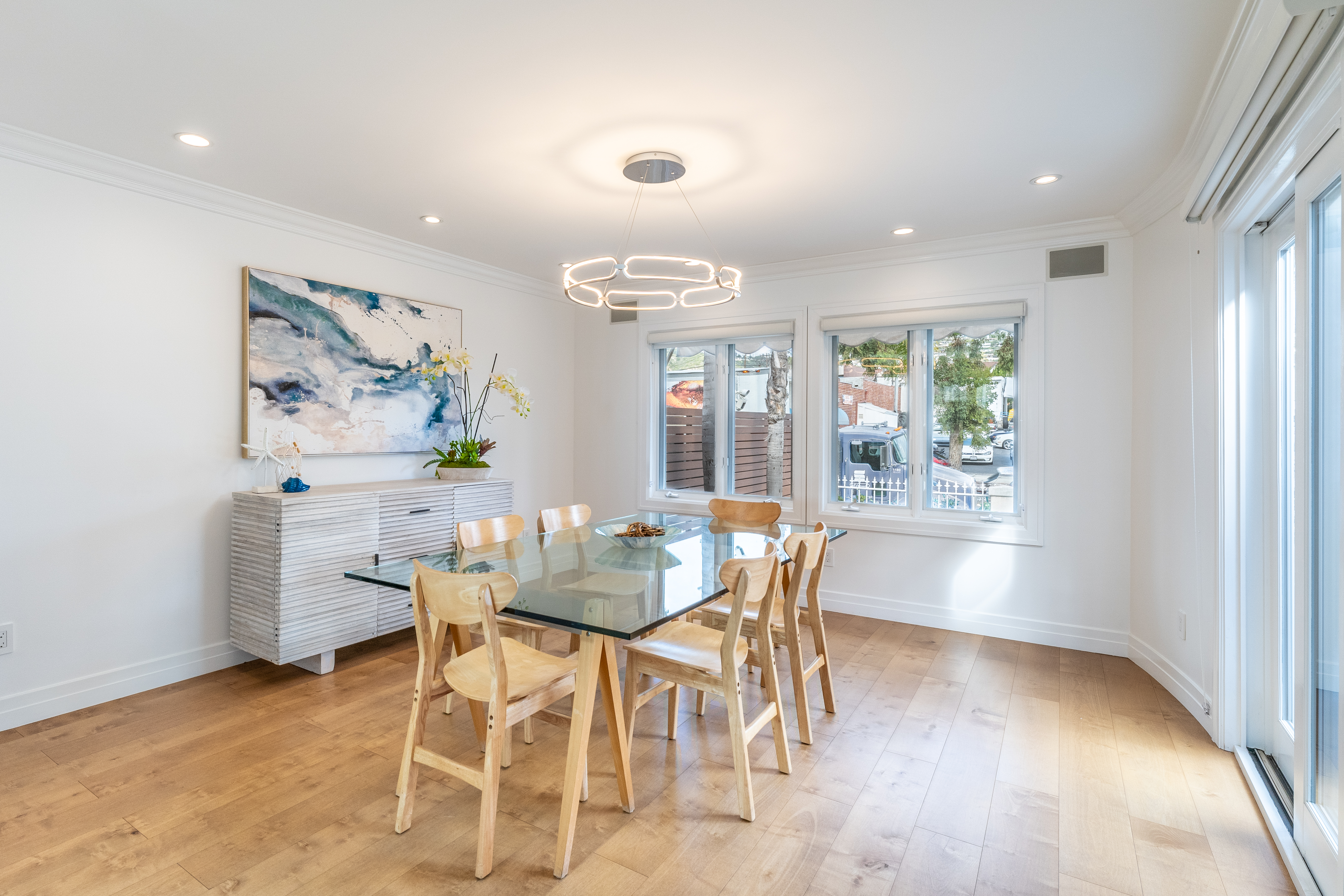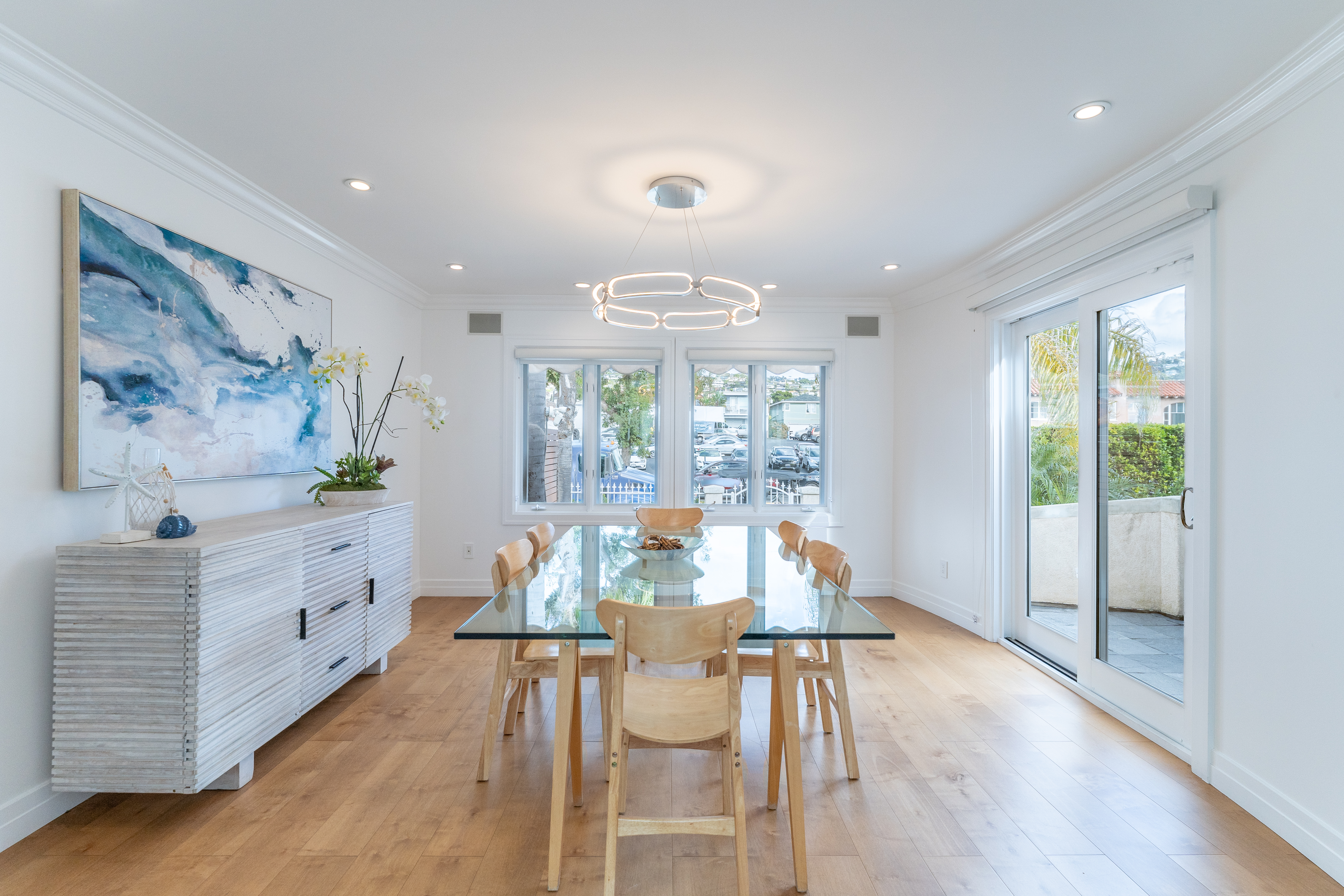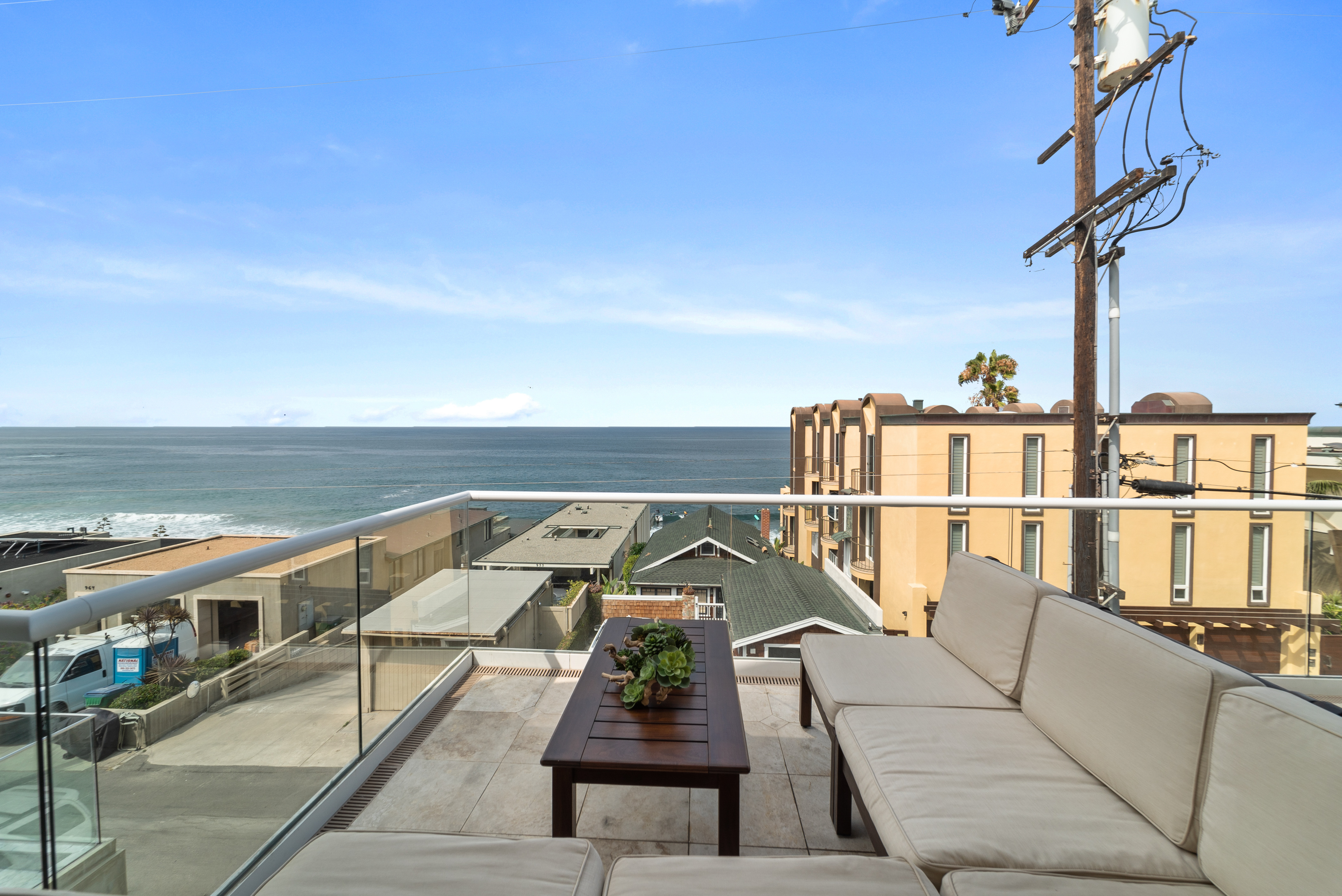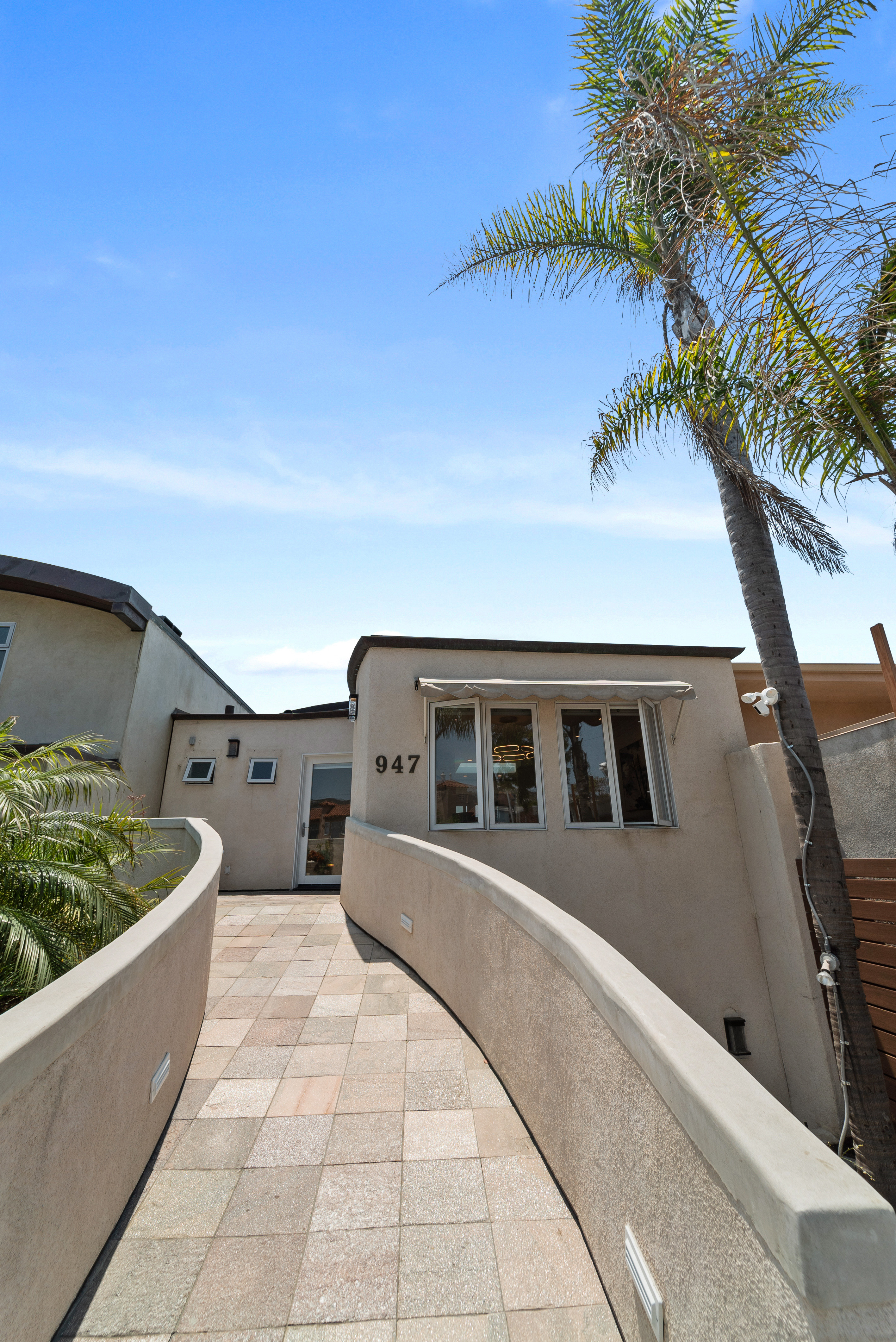 Enter from Pacific Coast Hwy, where plenty of metered street parking is available directly in front of the private gated courtyard. This outdoor space offers two distinct areas to enjoy: descend to the designated BBQ patio, or cross the entryway bridge to access the front door and adjacent seating area with a fire pit table.