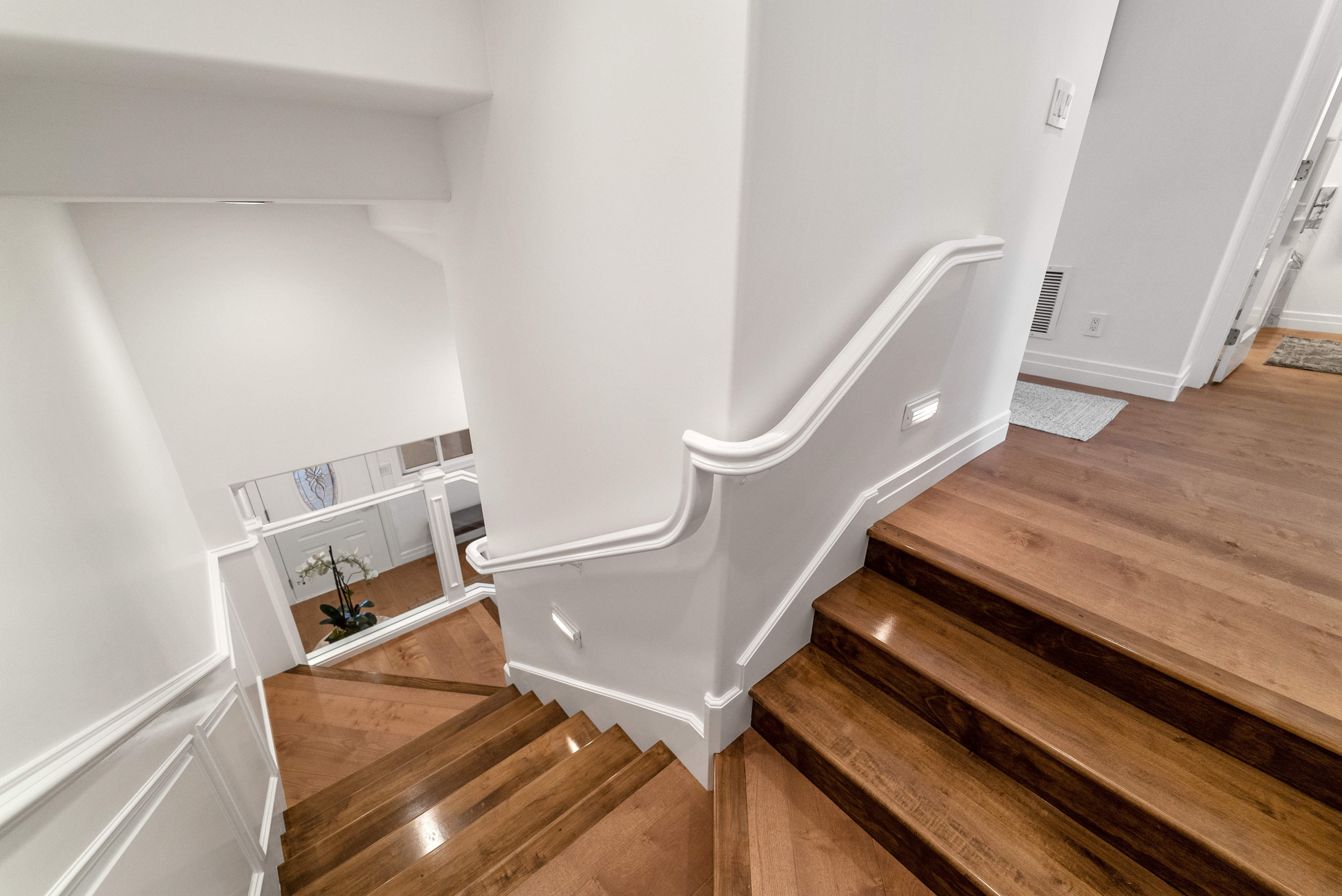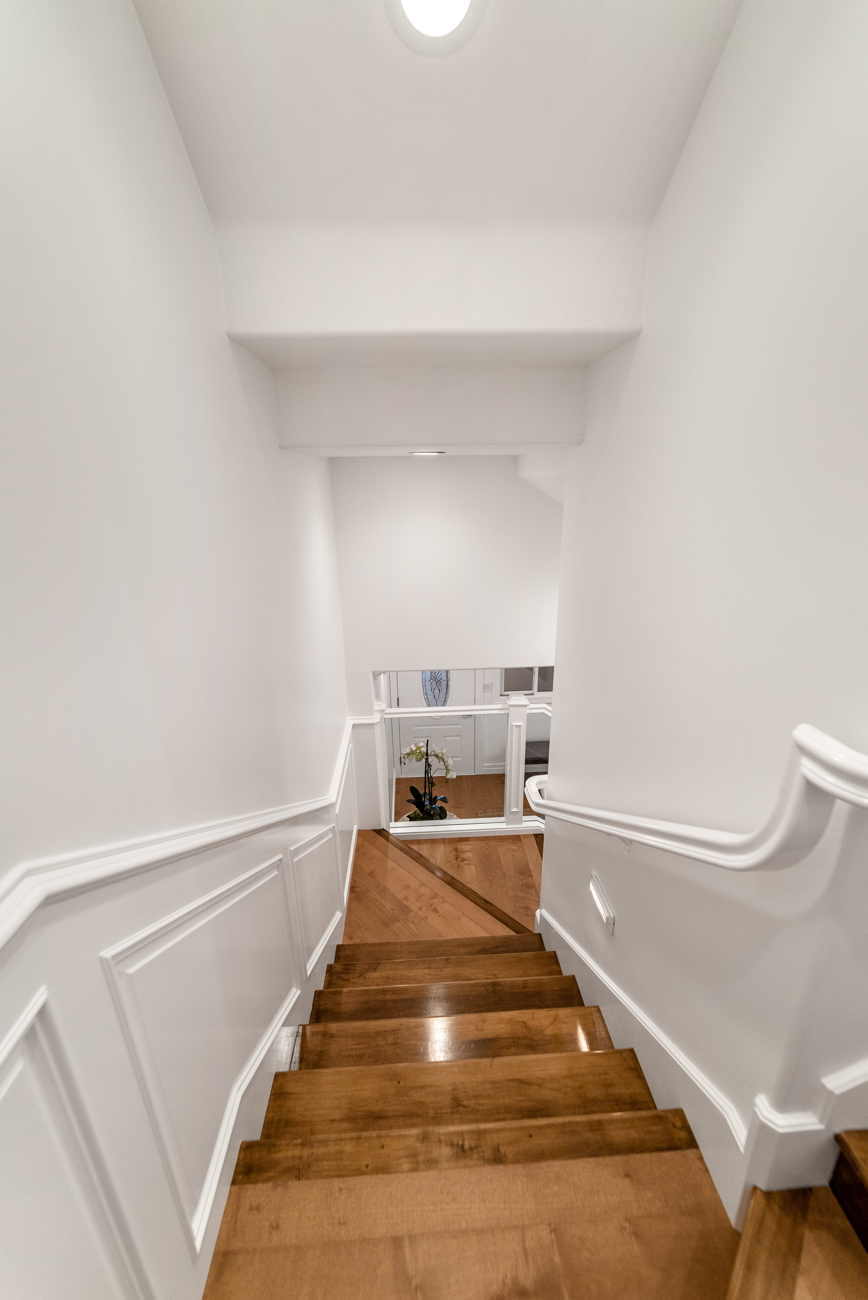 Descend the stairs to the lower level, where you’ll find the lower entryway, an attached three-car garage, and a convenient laundry room. Outside, a three-car driveway, accessible via Gaviota Dr.